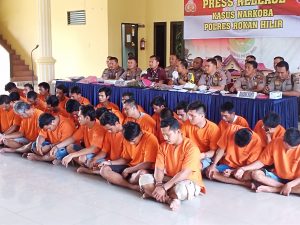 Adapun Barang Bukti (BB) yang disita tersebut, sambungnya, di peroleh dari 36 tersangka, sedangkan untuk jumlah kasus yang di tangani sebanyak 26 kasus. Dari 36 tersangka yang berhasil diamankan, 1 orang di antaranya seorang wanita, anak dibawah umur ada 2 orang tersangka dan masih dalam penyelidikan.