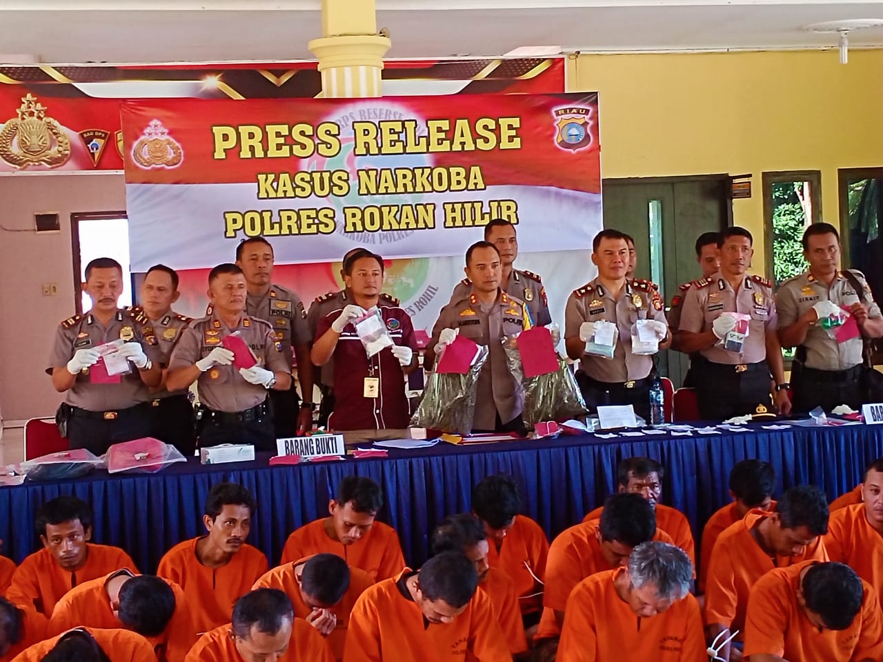 ROKANHILIR – Polres Rokan Hilir (Rohil) melakukan Press Release tindak pidana Narkotika dimulai dari tingkat Polres Rokan Hilir Dan Polsek jajaran, dari Tanggal 11 November 2019 S/D 30 November 2019, dalam Rangka Operasi Antik Muara Takus 2019.