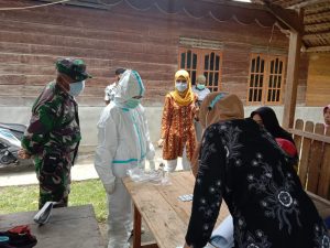MERANTI – Sebagai bentuk dukungan terhadap upaya pemerintah dalam memutuskan mata rantai penyebaran dan penularan Corona Virus Disease 2019 (Covid-19), Kodim 0303/Bengkalis, Koramil 02/TT melaksanakan kegiatan pengawasan pada pelaksanaan tracking dan rapid antigen, di Desa Alai Kecamatan Tebing Tinggi Barat Kabupaten Kepulauan Meranti.