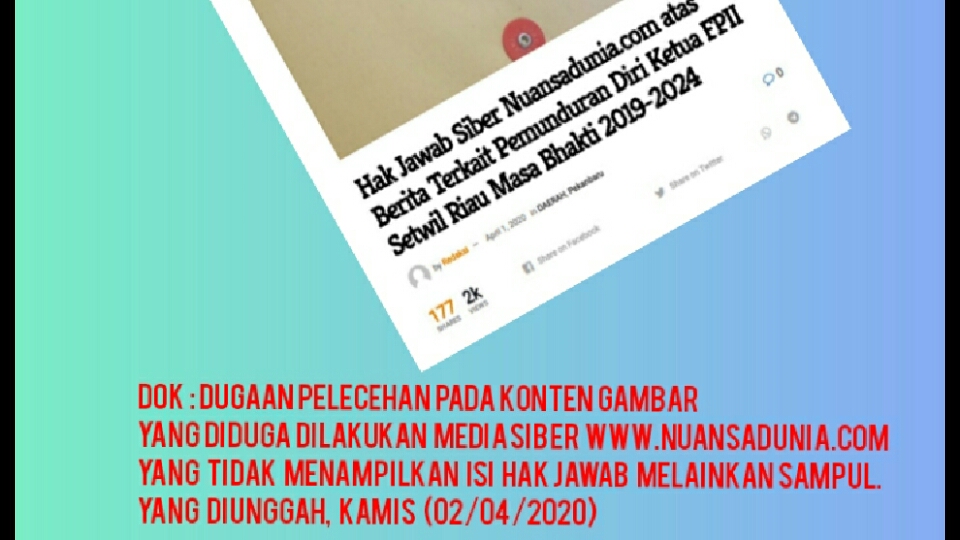 Dimana dalam Hak Jawab, Protes Keras dan Koreksi berita tidak dilakukan koreksi terhadap berita yang telah diunggah sebelumnya oleh kedua media siber diatas, dan bahkan kedua media siber diduga lakukan pelecehan dalam menyajikan Hak Jawab, Protes Keras dan Koreksi berita pada Konten Gambar tidak menampilkan Gambar Hak Jawab.
