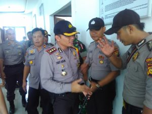 BAGANBATU – Kapolres Rokan Hilir, AKBP. Sigit Adiwuryanto, S.H, SIK, didampingi Kapolsek Bagan Sinembah, Kompol. H. Asmar, Meninjau sidang pleno rekapitulasi Penghitungan Suara Di PPK Bagan Sinembah.