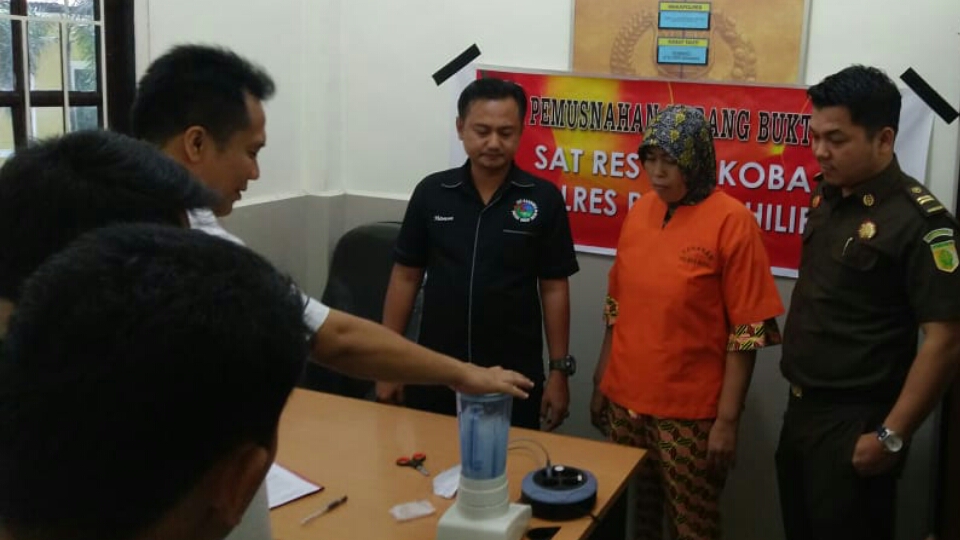 Giat pemusnahan dihadiri oleh Jaksa Penuntut Umum Rahmad, S.H, Penasehat Hukum Afrizal, S.H, Anggota Si Propam, Sat Tahti, dan Penyidik Sat Res Narkoba, Kamis (14/11/19) sekira pukul 15.30 WIB.