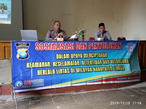 LINGGA – Kapolres Lingga melalui Kanit Dikyasa Satlantas Polres Lingga, Bripka. Riki M Azen, melakukan penyuluhan dalam upaya menertibkan dan kelancaran dalam berlalu lintas, Senin (18/11/19), di Kantor Desa Penuba.
