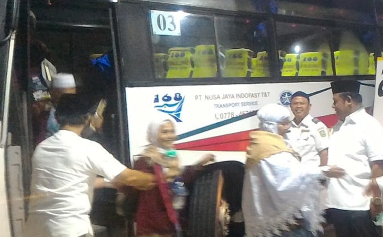 Kedatangan Jemaah Haji Rohil bersamaan dengan Jemaah Haji asal Kabupaten Siak di Embarkasi Hang Nahdim, Batam, tepat Pukul 23:00 WIB, Jum’at (7/9/18),  Kloter 10 (sepuluh).